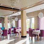 Просторные залы позволяют разместиться гостям таким образом, чтобы никоим образом не стеснять личное пространство друг друга. Ресторан обустроен летней верандой, посещение которой в вечернее время способно буквально взбудоражить кровь. Стоя под открытым ночным небом, вдыхая теплый летний воздух и любуясь яркими звездами, Вы гарантированно запомните этот день как один из самых лучших.