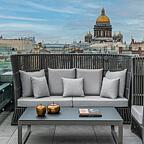 Мы объединили в отеле особенную архитектуру, искусство, индивидуальность, тенденции и тренды в гастрономии, культуре и бизнесе, инновации и собственный театр. Всё это сложилось в богатую и многоцветную палитру, олицетворяющую современный Петербург.